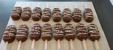 Welkom bij de heerlijke wereld van onze Cakesicles! Ontdek deze unieke gebakjes die niet alleen fantastisch smaken, maar er ook nog eens prachtig uitzien. Een perfecte combinatie van cake en chocolade, ideaal voor elke gelegenheid. Duik met ons mee en laat je verleiden door de charmes van onze met liefde gemaakte Cakesicles.